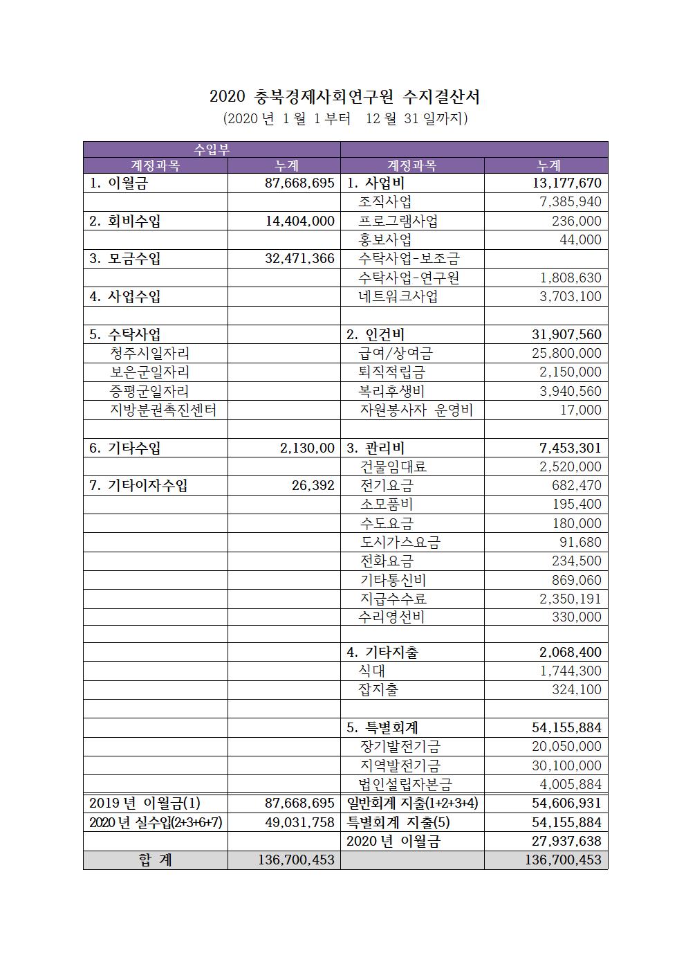 충북경제사회연구원-2020년 재정보고