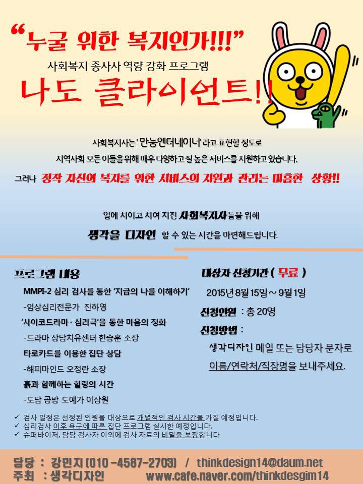 [모집] 지역사회 사회복지관련 종사자의 역량강화를 위한 집단프로그램